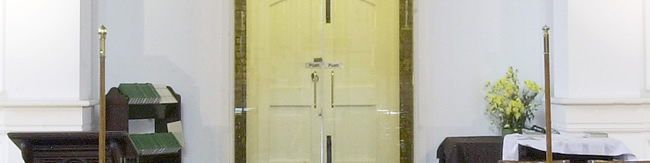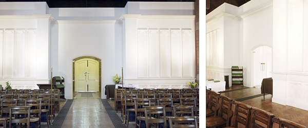 church including fibrous panelling to church side of walls and new