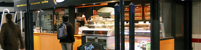 The demolition of an existing kiosk and the design, manufacture and erection of a new specialist coffee kiosk. Construction was steel frame clad in black panelling and fitted out to clients requirements.